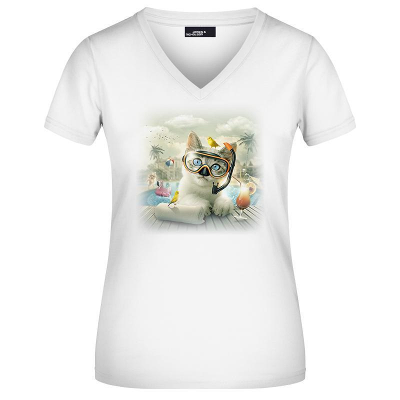 Tee-shirt blanc Femme - Chat Piscine